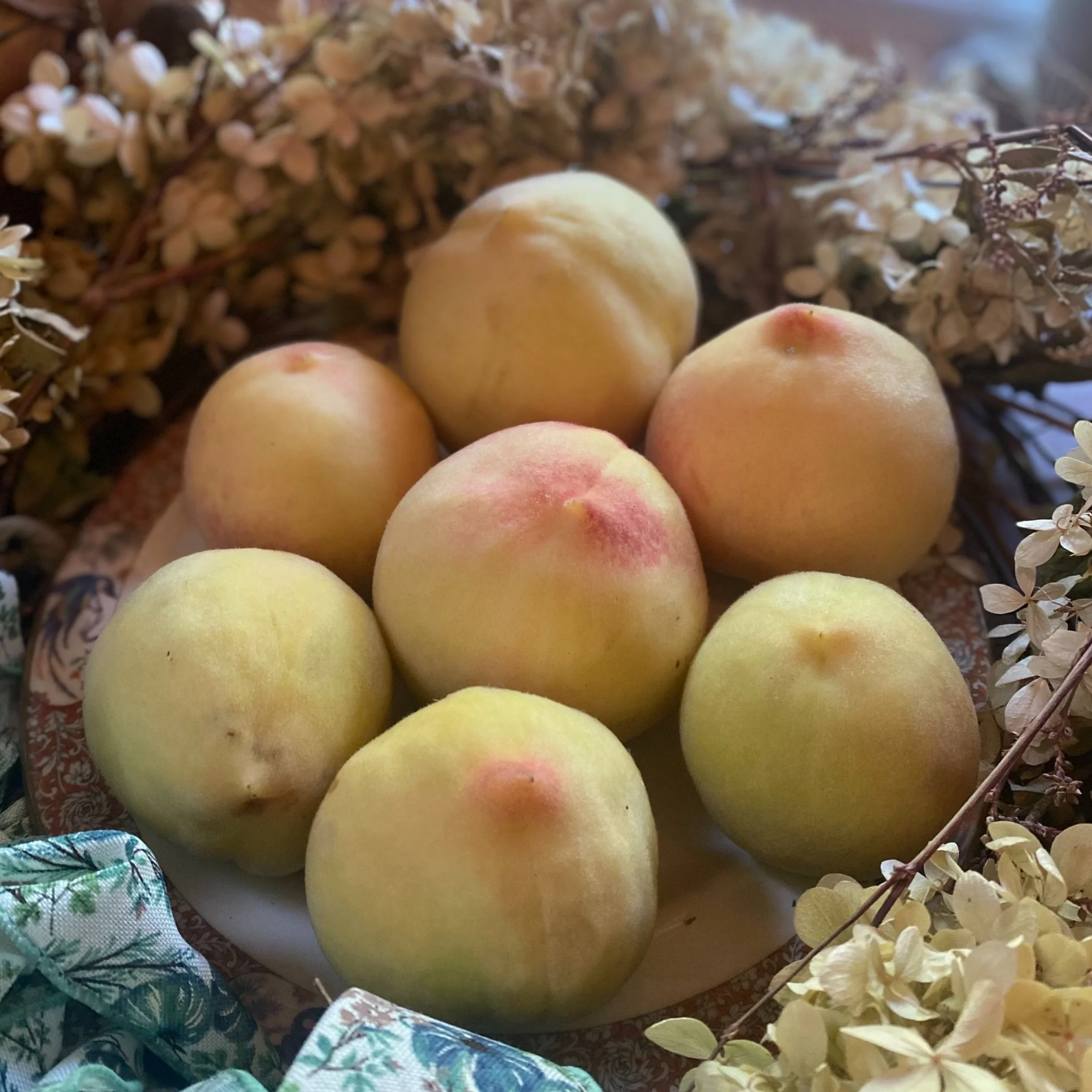 July (Two Pickups): Our famous Chinese Honey Peaches (prized for their juicy texture), Westcott Apricots, and the first of the heavy, sun-warmed Heirloom Tomatoes.