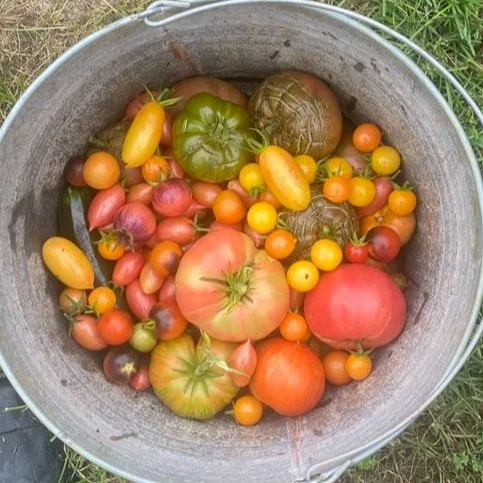 October: Deep-autumn Apples and Pears, plus our rare Long-Keeper Heirloom Italian Tomatoes. These traditional "hanging" tomatoes are a kitchen staple—they stay fresh on your counter or hanging in your pantry for 3-4 months!