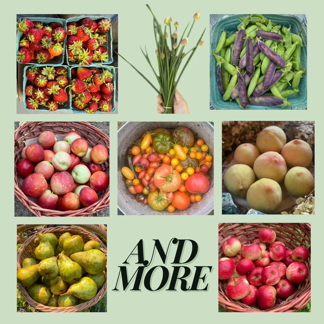 September: A transition to fall with Estate Grapes, crisp Heirloom Apples, Plums, and Pears. (See attached pic for 2024’s example).